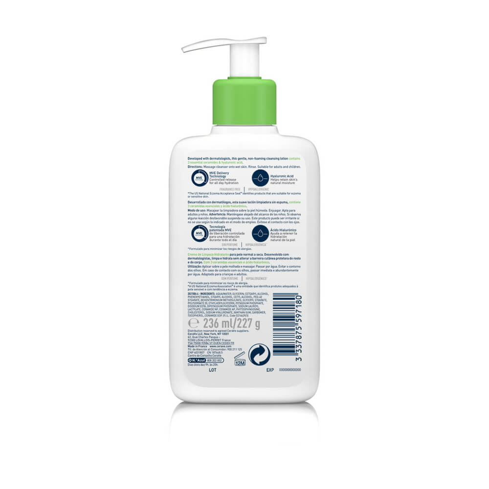 Cerave Limpiadora Hidratante es una loción hidratante apta tanto para el cuerpo como el rostro que ha sido desarrollado a base de un complejo de 3 ceramidas esenciales para la piel.