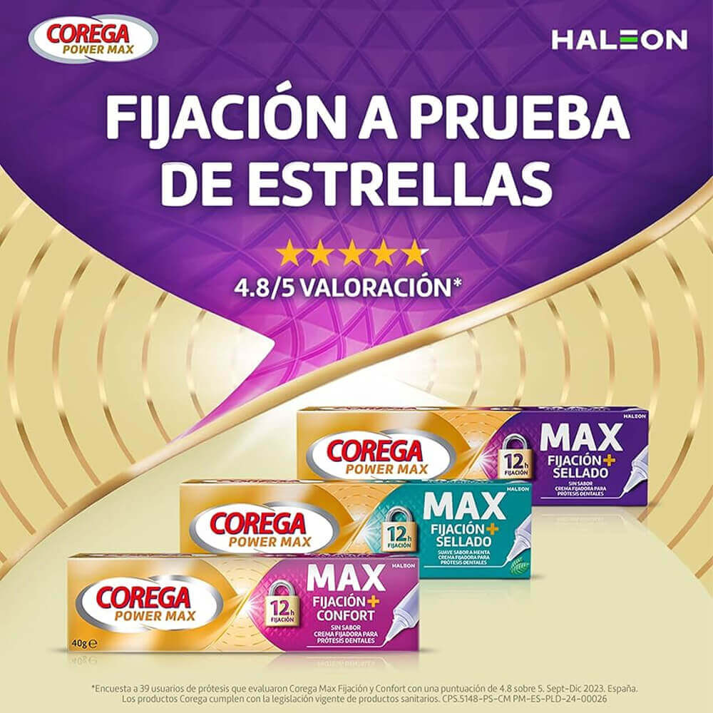 Corega Power Max mejora la calidad de vida de los usuarios de prótesis dentales al ofrecer una fijación segura que evita movimientos incómodos y filtraciones. Su sellado eficaz protege contra irritaciones causadas por restos de alimentos, facilitando una mayor confianza al hablar, sonreír y comer. Además, su fórmula cuidadosa ayuda a mantener la salud de la mucosa oral, promoviendo una sensación de frescura y limpieza durante todo el día.
