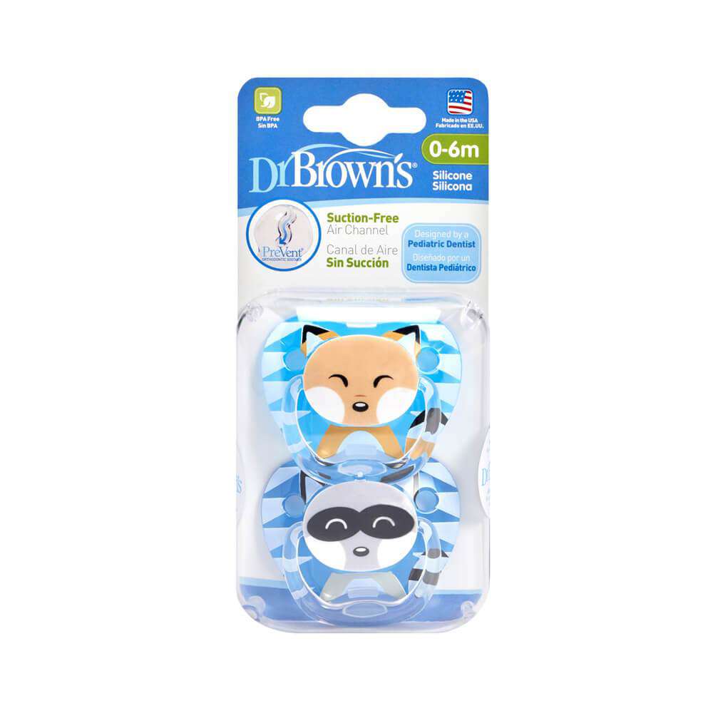 Dr Brown's Chupete Prevent Animal Azul 0-6 Meses este pack de chupetes está indicado para los niños en sus primeros seis meses de edad.