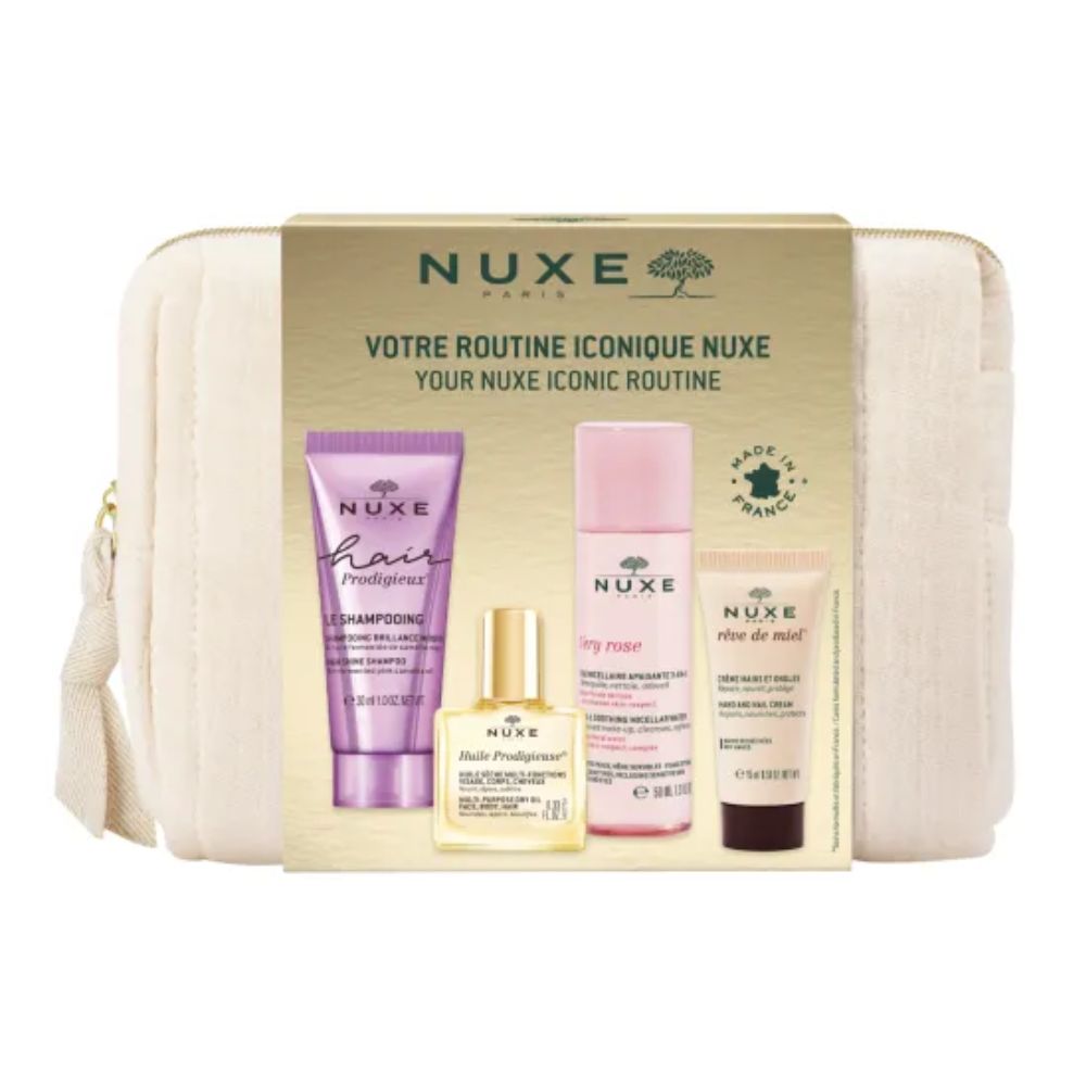 El Nuxe Kit De Viaje Rutina Icónica es un set cosmético diseñado para el cuidado facial diario de pieles normales a mixtas. Contiene versiones miniatura de los productos más emblemáticos de la gama, en formatos prácticos para llevar en cualquier viaje o escapada. Ideal para adultos que buscan mantener una rutina completa y eficaz en cualquier lugar, incluye texturas ligeras en crema, sérum y gel limpiador.