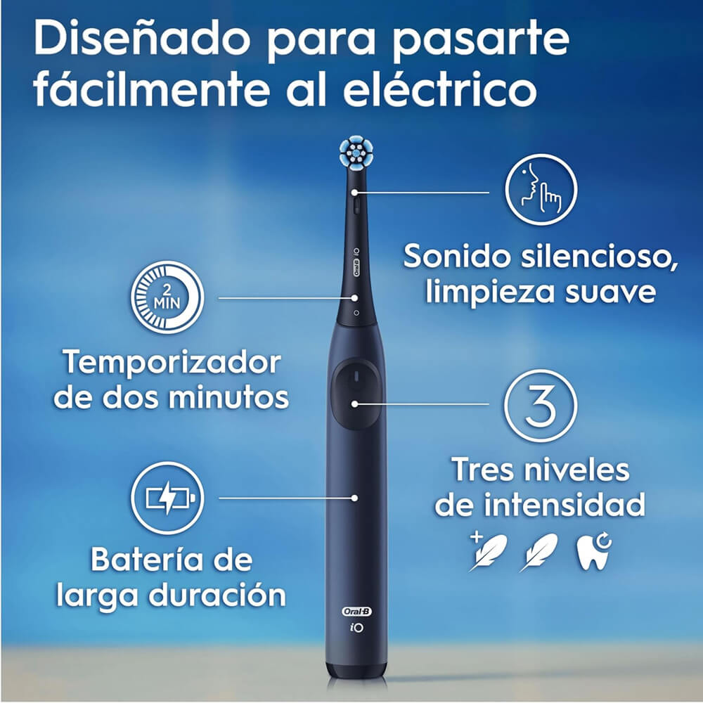 Oral-B Io2 Laboratory Limpieza Profunda Prof Azul mejora significativamente la salud bucal al eliminar eficazmente la placa bacteriana y reducir la inflamación de las encías. Su uso regular contribuye a mantener un aliento fresco y dientes más blancos, mejorando la confianza al sonreír. Facilita una rutina diaria de cuidado bucal profesional desde casa, promoviendo una boca sana y protegida frente a enfermedades periodontales.
