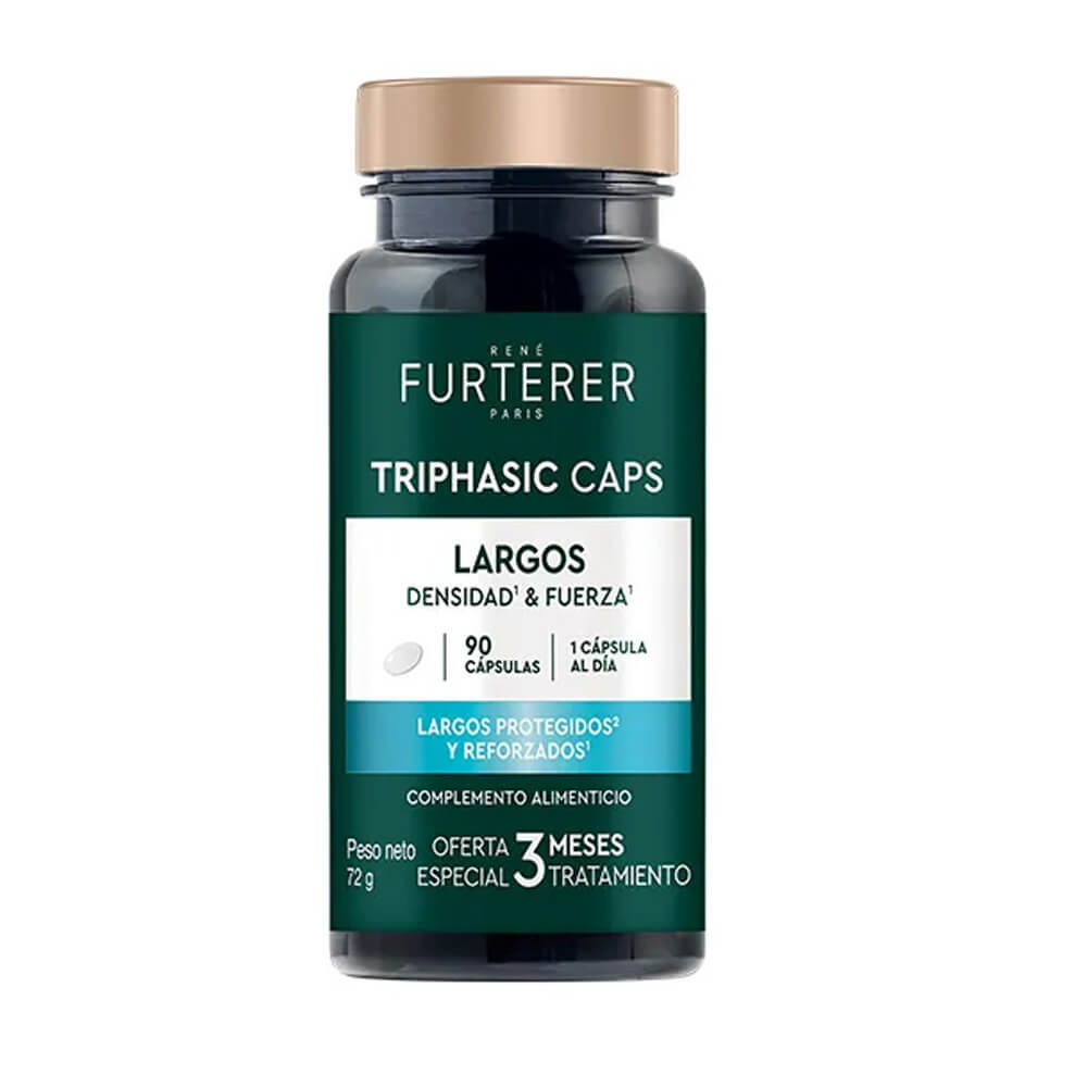Rene Furterer Triphasic es un complemento alimenticio en cápsulas diseñado para fortalecer el cabello debilitado y frágil. Está especialmente indicado para adultos que buscan combatir la caída del cabello y mejorar su densidad y vitalidad. Presentado en formato de 90 cápsulas, es ideal para un tratamiento completo y continuado.