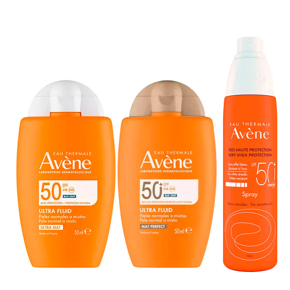 Rutina Avene Solar Spf50+ Ultra-Mat Fluido 50 ml + Mat Perfect Fluido Color 50 ml + Regalo Solar Spf50+ Spray 200 ml