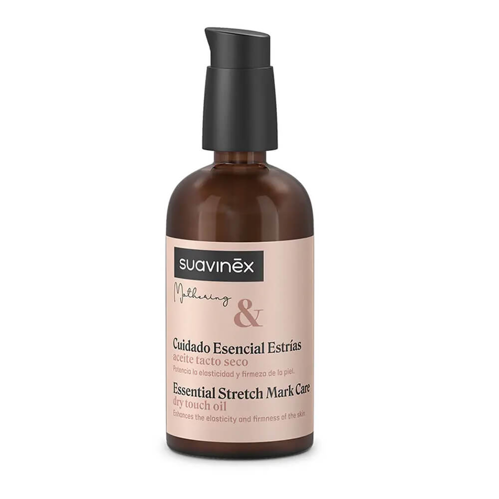 Descubre el aceite de cuidado esencial de Suavinex, especialmente formulado para prevenir y reducir la apariencia de las estrías durante el embarazo o cambios bruscos de peso. Con una fórmula suave y de rápida absorción, este aceite ayuda a mantener la piel hidratada y elástica, previniendo la formación de estrías.