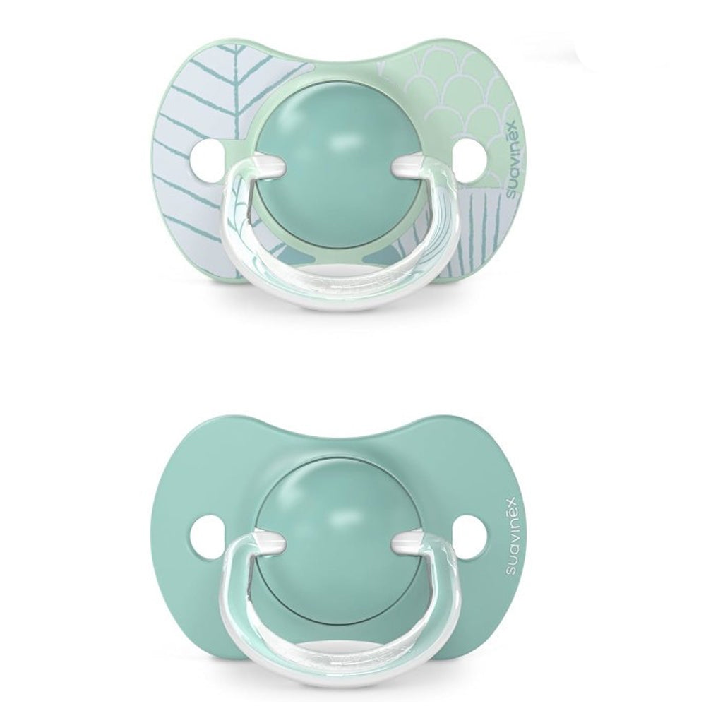 Suavinex Chupete Tetina Anatómica de Silicona Clásico Azul +18 Meses ayudan a calmar a tu bebé. Poseen una tetina anatómica, que imita la forma del pezón materno y se adapta al paladar del bebé de manera natural. La tetina está fabricada con silicona, un material muy resistente y no deformable, inalterable en cuanto a su olor y su color. Sus orificios permiten que circule el aire y evitan la acumulación de saliva. Su forma ergonómica se adapta perfectamente a la carita del bebé y garantiza una adecuada presión al succionar.