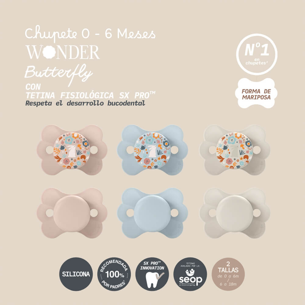 El chupete está fabricado con silicona de alta calidad, libre de BPA y ftalatos, garantizando la seguridad y el bienestar del bebé durante su uso.