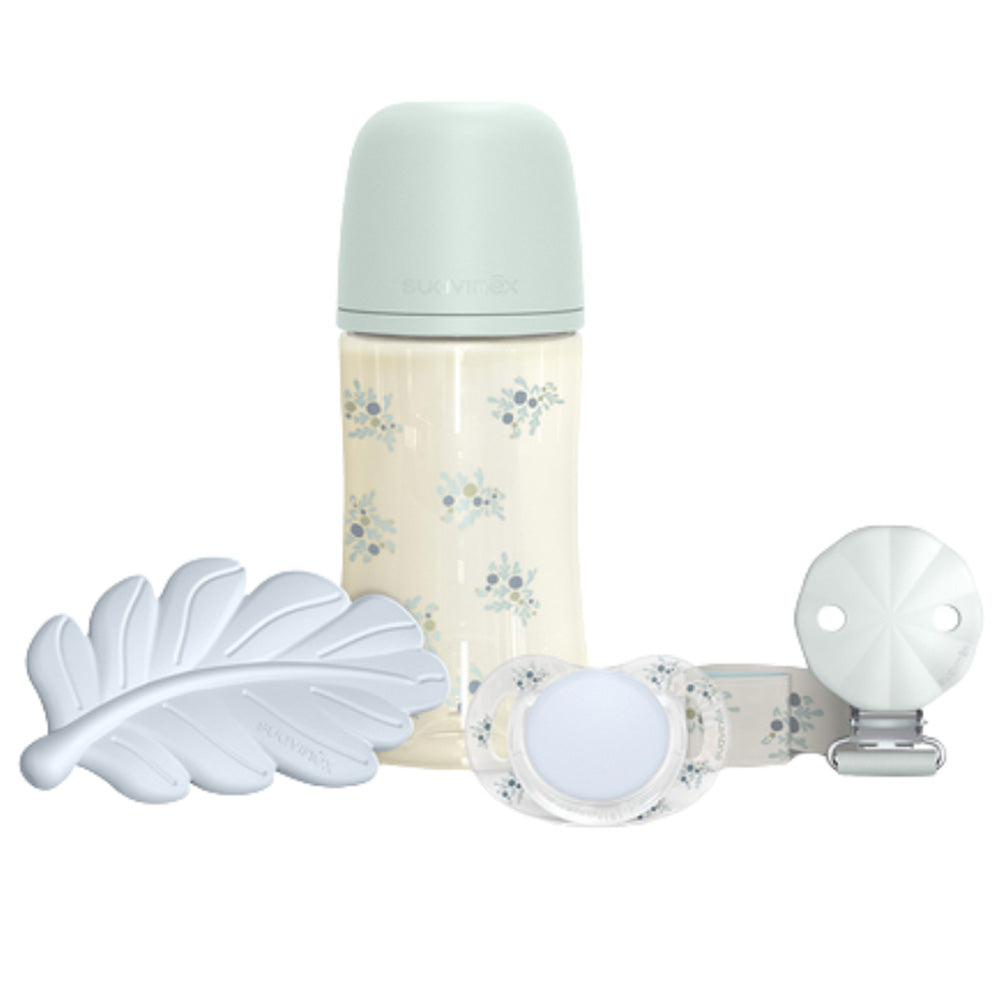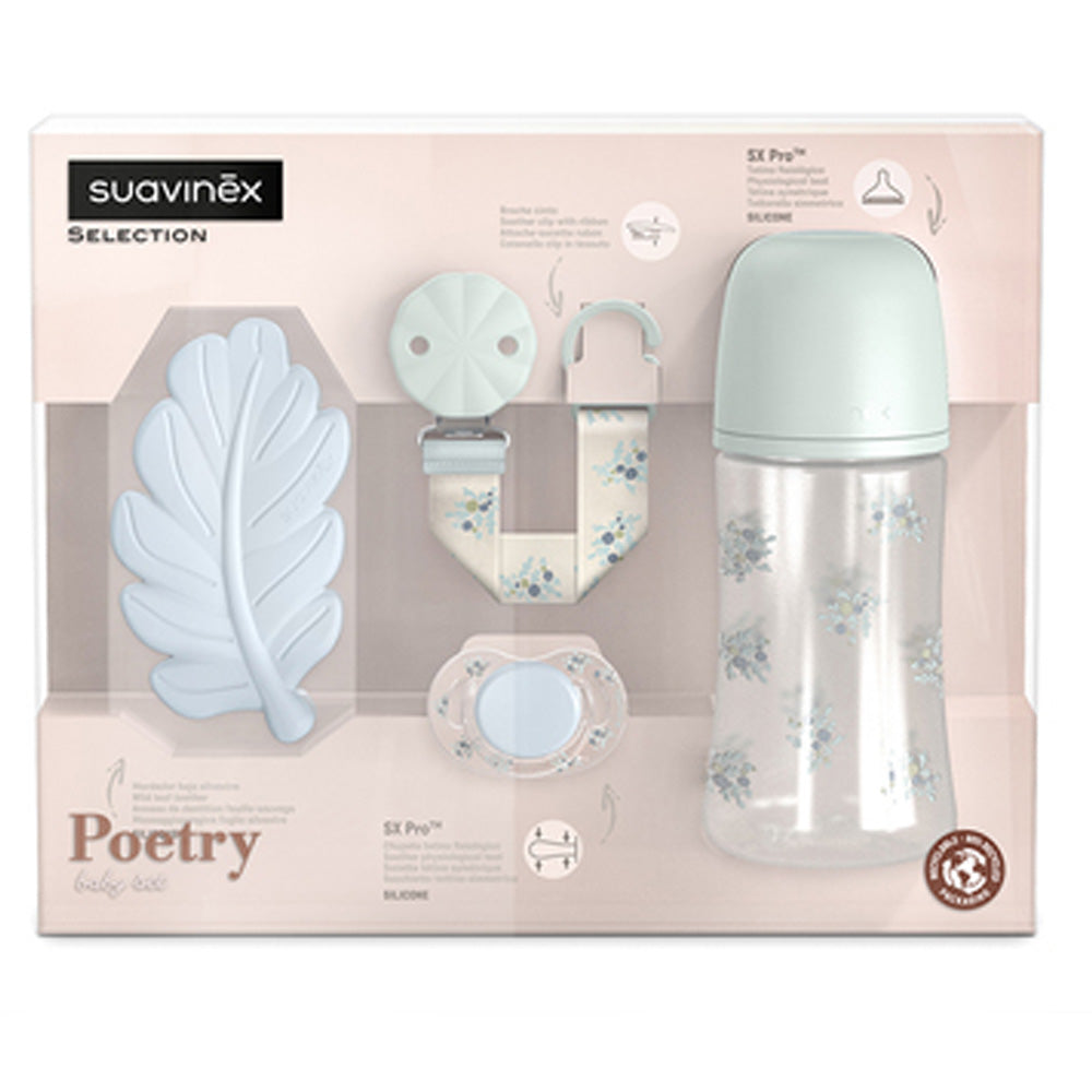 Suavinex Set Regalo Poetry Chupete + Broche + Biberón + Mordedor Hoja Azul 0-6M 219894
