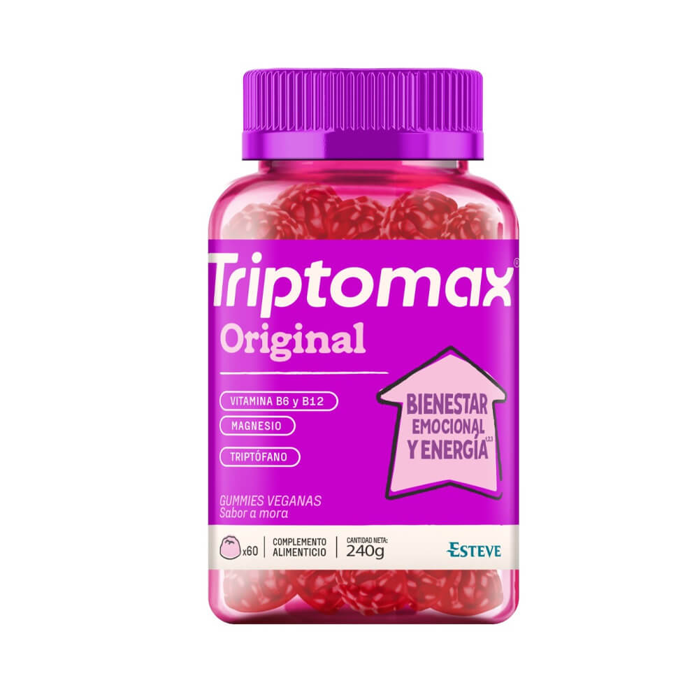 Triptomax Original es un complemento alimenticio en formato gummy con sabor a mora, diseñado para adultos que buscan mejorar su bienestar emocional y favorecer un sueño reparador. Estas gomitas masticables combinan ingredientes naturales y vitaminas para apoyar el equilibrio del estado de ánimo y la relajación, ideales para quienes desean un método cómodo y agradable de suplementación diaria.